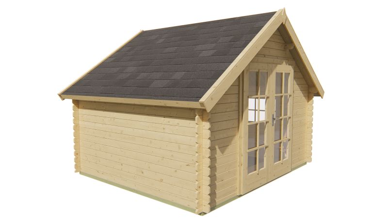 Met een buitenmaat van 350 x 300 cm is Blokhut Skov van het merk Tuindeco een compacte, sfeervolle en functionele toevoeging aan je tuin. De constructie is vervaardigd uit hoogwaardig Noord-Europees vurenhout met een houtdikte van 28 mm, wat zorgt voor een stevige en duurzame blokhut. Het zadeldak heeft een unieke, schuin aflopende vorm die niet alleen zorgt voor een stijlvolle uitstraling, maar ook praktische bescherming biedt tegen regen en andere weersinvloeden. Blokhut Skov is uitgerust met een dubbele deur met veel glas en een zijraam dat gespiegeld geplaatst kan worden, wat bijdraagt aan veel natuurlijk licht en een flexibele indeling.