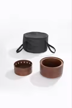 De Embra is verkrijgbaar in zwart staal en cortenstaal, beide duurzaam en perfect voor in de tuin, op het terras of onder de overkapping. Daarnaast wordt de Embra geleverd met een handige draagtas, zodat je hem eenvoudig kunt meenemen, bijvoorbeeld naar vrienden of op de camping.